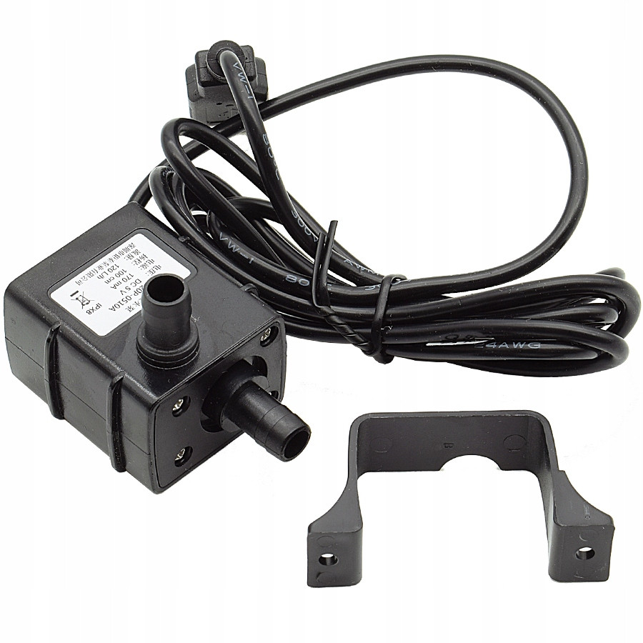 Mini pompa zanurzeniowa model AD20P-0510A w kolorze czarnym, z możliwością przepływu cieczy nawet do 120 l/h. Jej napięcie pracy wynosi 5 V, a pobór prądu 170 mA. Posiada przewód o długości 160 cm oraz wtyk USB A