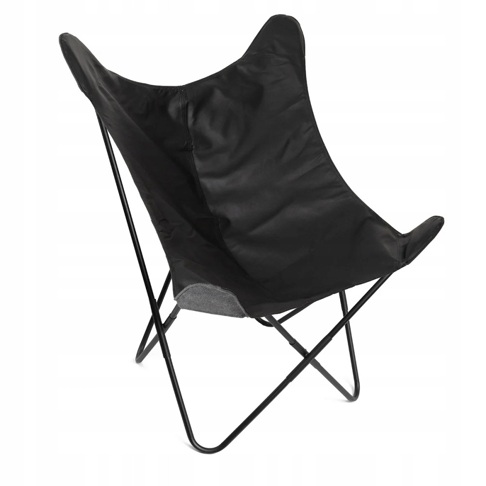 Konstrukcja fotela Butterfly jest bardzo prosta - wykorzystuje pojedynczy materiał podwieszany, który pełni zarówno funkcję siedzenia jak i pokrycia. Całość osadzona jest na prostym metalowym stelażu. Dodatkowo całość pokryta czernią prezentuje się niezwykle elegancko a siedzisko z eko skóry dodaje charakteru. Wymiary fotela wynoszą 70 x 80 x 102 cm.