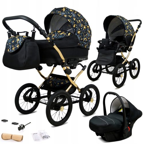 BabyLux MARGARET GOLD Passeggino 3in1, gondola, passeggino, seggiolino auto