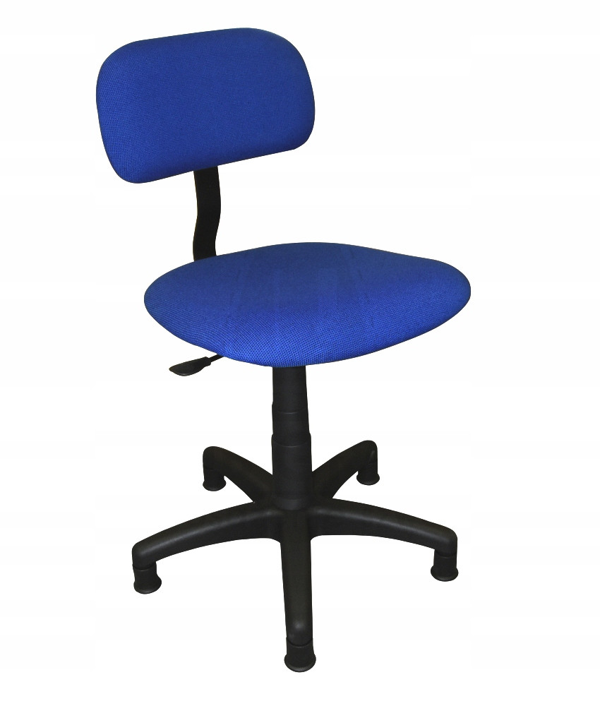 Ergonomicze krzesło obrotowe z regulacją wysokości poprzez amortyzator gazowy, z regulacją głębokości siedziska. Zastosowanie zarówno jako krzesło przemysłowe jak i krzesło do szwalni. Wersja na stopkach.