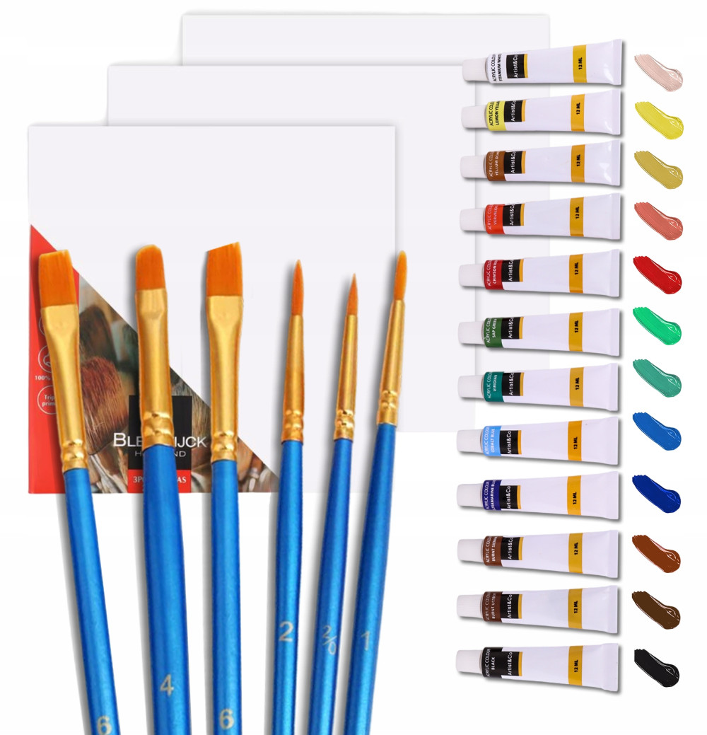 ZESTAW DO MALOWANIA FARBY AKRYLOWE PĘDZLE PŁÓTNO