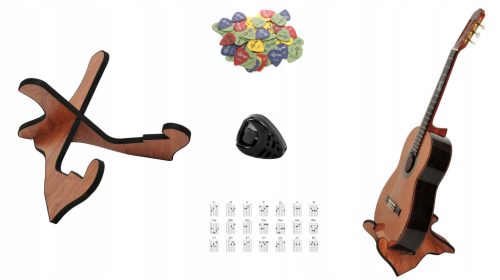 Oryginalny, drewniany statyw do gitary. Miękkie nakładki ochraniają powierzchnię przed zarysowaniami oraz zwiększają stabilność instrumentu. Możliwość złożenia i spakowania do pokrowca.