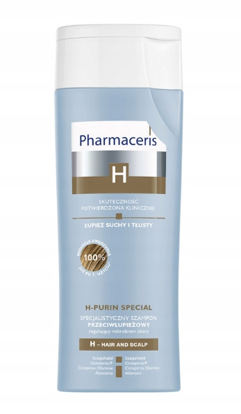 PHARMACERIS H-PURIN Specjalistyczny szampon przeciwłupieżowy przeznaczony jest do mycia i pielęgnacji skóry głowy z objawami łupieżu o różnej etiologii, w tym łupieżu suchego i tłustego, swędzenia, podrażnienia i łuszczenia się skóry.