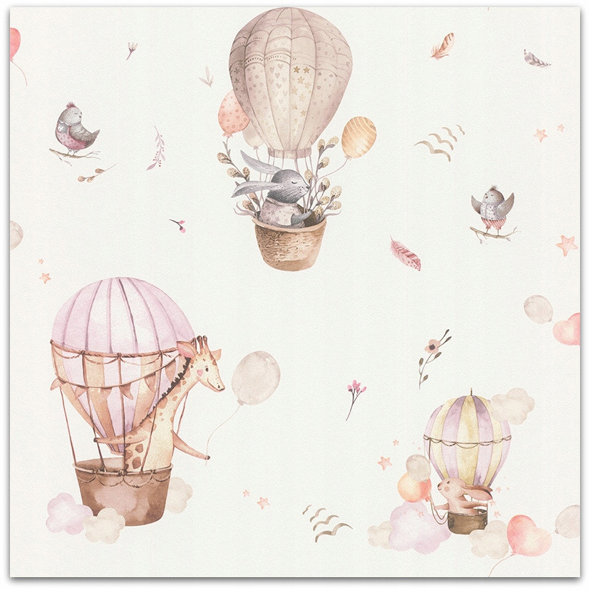 Carta da parati per bambini Palloncini ANIMALI ROSA, non tessuto