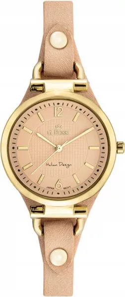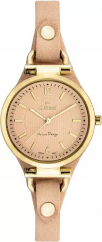 Orologio da donna color salmone dorato con cinturino in pelle, design elegante per donna