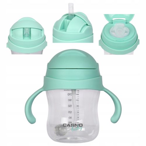 ❗ Butelka Casno DIZZY ma pojemność 240 ml. Posiada podziałkę litrową z gradacją co 30 ml, która ułatwia odmierzanie przygotowanych napojów. Jedna butelka – dwa ustniki. Casno DIZZY wyposażona została w dwa typy ustników. Pierwszy, kubek niekapek przeznaczony dla dzieci od 6 miesiąca życia. Drugi, ustnik ze słomką, jako kolejny krok nauki samodzielnego picia.