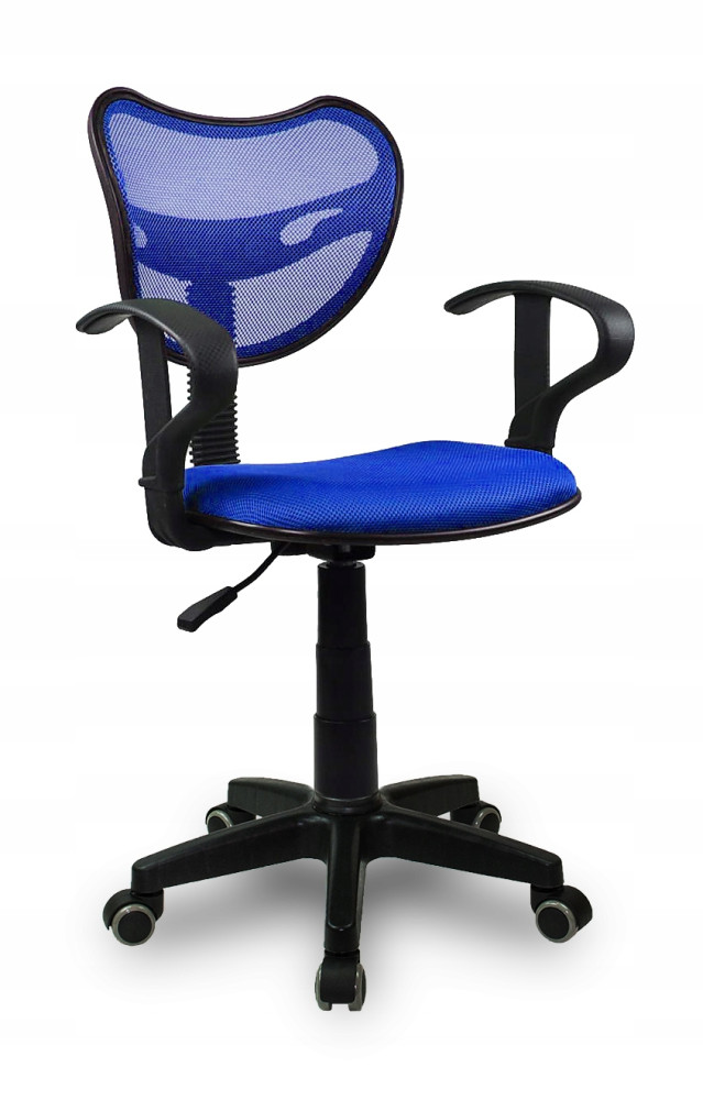 Młodzieżowe krzesło biurowe z oryginalnie tapicerowanym siedziskiem oraz oparciem wentylowanym. Wygodne plastikowe podłokietniki z nowoczesnym kształtem, ułatwiające prawidłowe ułożenie przedramienia.
