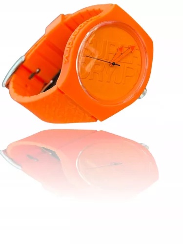 Pasek wykonany z silikonu  w kolorze pomarańczowym, podkreśla sportowy charakter zegarka.