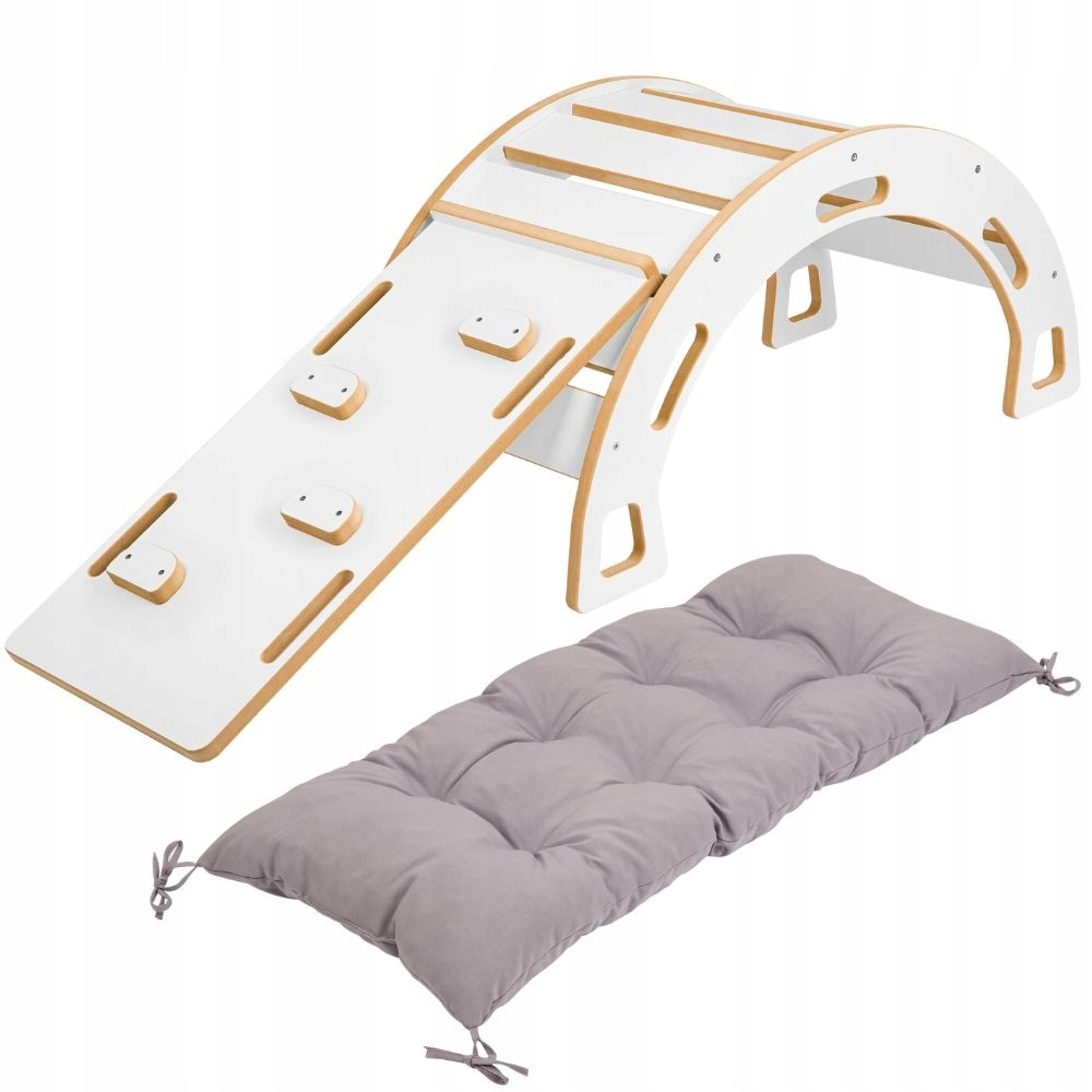 Bujak dla dziecka w kolorze białym ze zjeżdżalnią i ścianką wspinaczkową oraz poduszką to niezwykła zabawka, która dostarczy mnóstwo radości oraz wspomoże rozwój malucha w duchu metody Montessori. Ten fajny bujak Montessori jest nie tylko doskonałym narzędziem do zabawy, ale również idealnym sposobem na ćwiczenie równowagi, koordynacji oraz rozwijanie zdolności motorycznych dziecka.