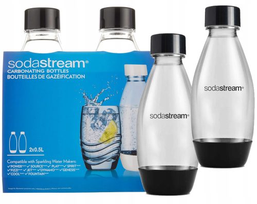 Butelki marki Soda stream to doskonałe rozwiązanie dla wszystkich miłośników napojów gazowanych. Ten dwupak butelek o pojemności 0,5L w kolorze czarnym może być doskonałym uzupełnieniem Twojego doświadczenia z korzystania z ekologicznej butli gazowej.