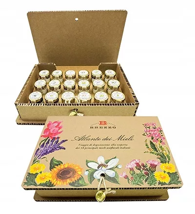 Polecamy ten box prezentowy jako oryginalny prezent dla miłośników miodu. Pudełko zawiera 18 rodzajów oryginalnych miodów z różnych części Włoch. Dodatkowo dołączona jest do niego karta, na której znajduje się mapa Włoch z opisami miejsc docelowych, skąd pochodzą miody.