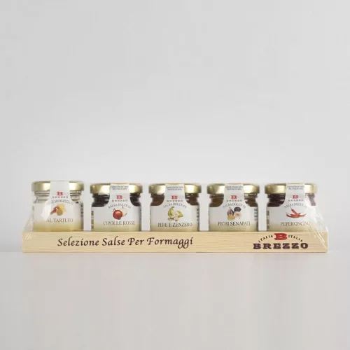 Zestaw prezentowy 5 sosów do serów na drewnianej podstawie