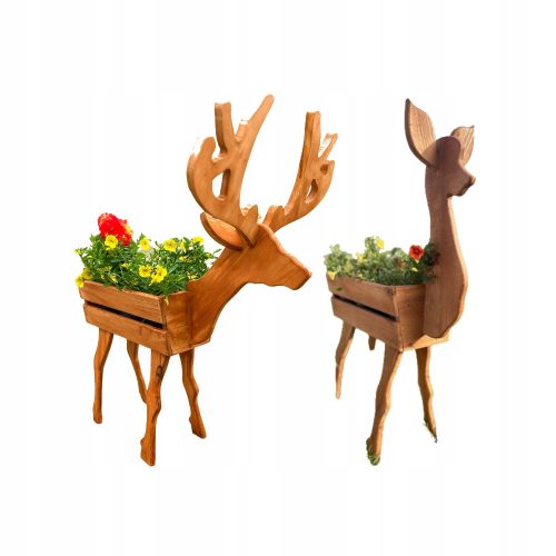 Zestaw kwietników drewnianych stojących w tylu naturalnym, boho JELEŃ + SARNA tik