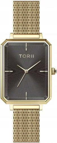 Czarna tarcza z subtelnym, złotym logo Torii oraz minimalistycznymi indeksami dodaje wyrazistości i elegancji całej kompozycji. Kształt koperty w formie prostokąta jest niezwykle oryginalny, nadając zegarkowi nowoczesny i pociągający wygląd, który przyciąga spojrzenia i zachwyca detalicznym wykonaniem.