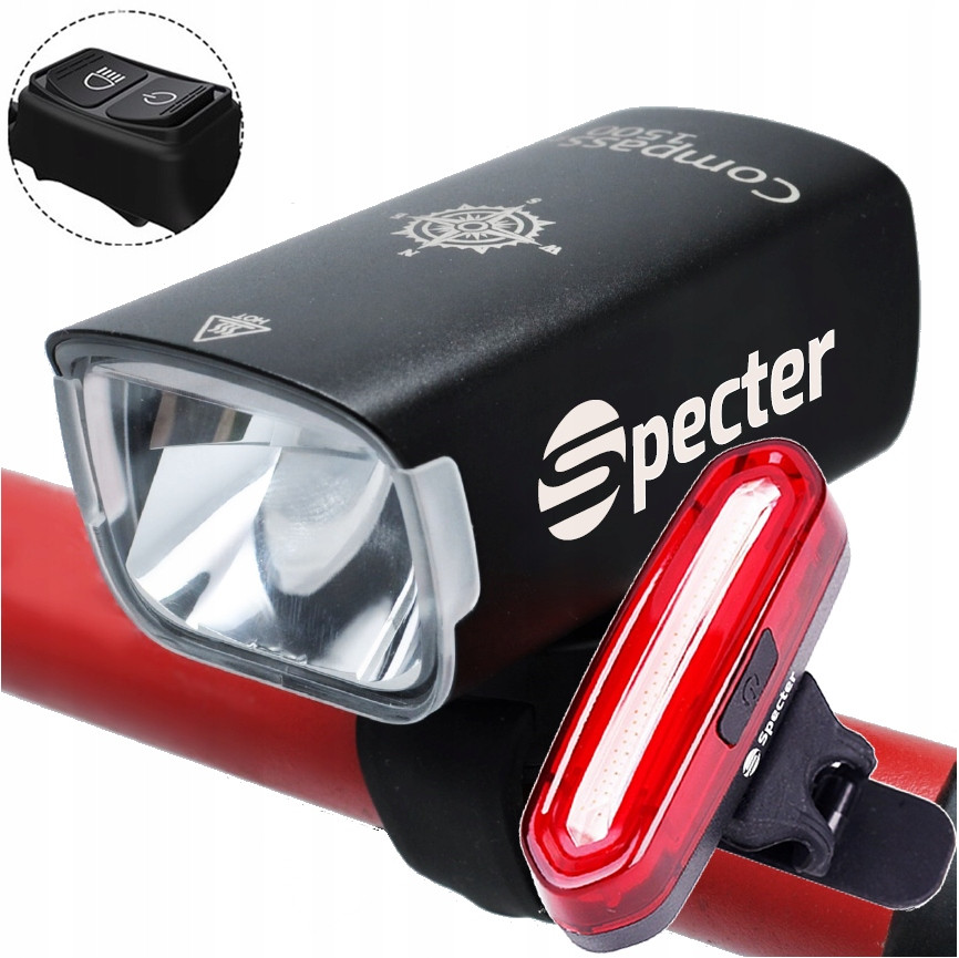 Luce per bicicletta Spectre COMPASS 1500 lm USB + Luce per bicicletta Spectre YQ-Y19 120 lm Batteria