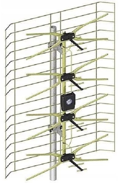 Antena szerokopasmowa. Aluminiowe elementy anteny zostały anodowane galwanicznie, a stalowe - ocynkowane galwanicznie.