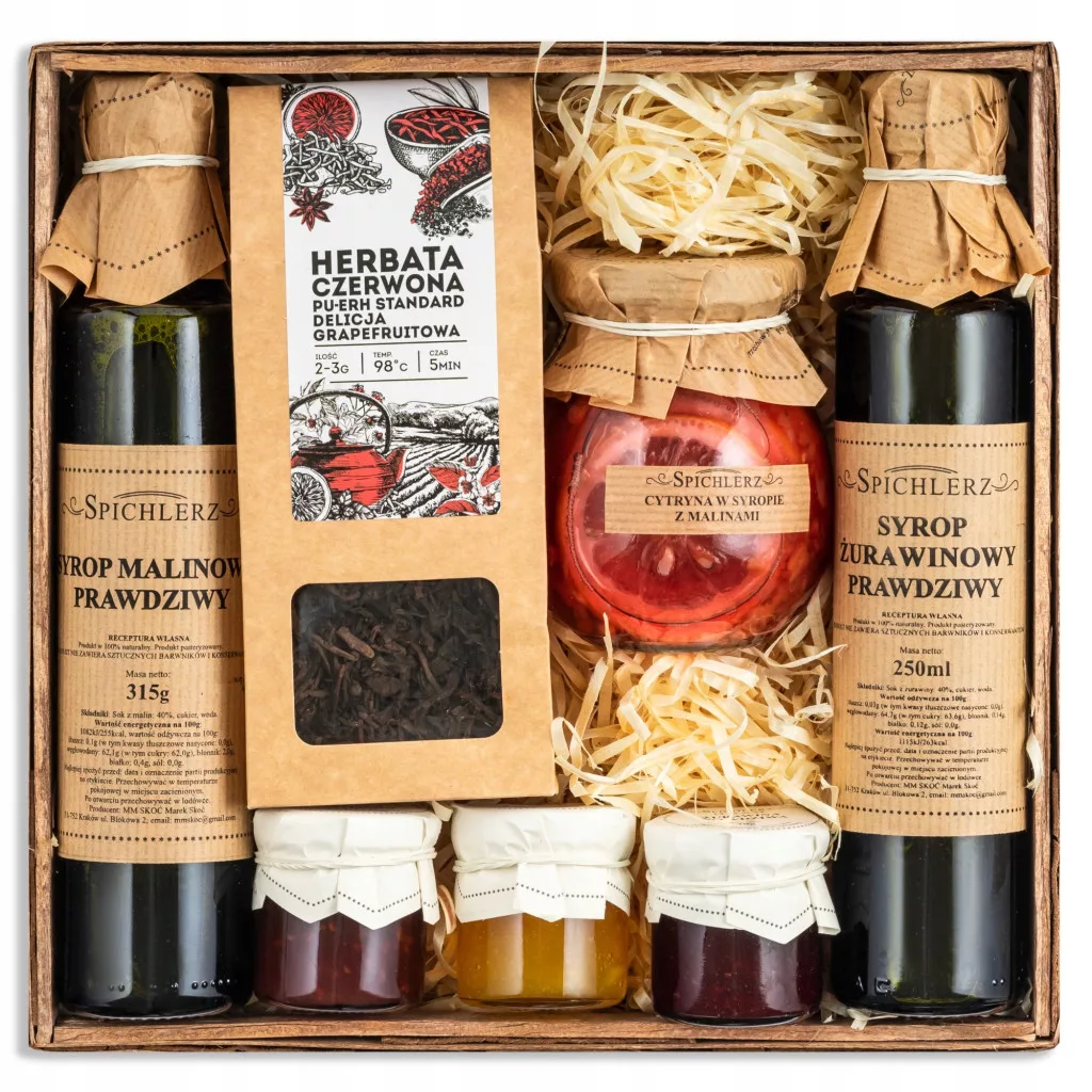 Zestaw KOSZ PREZENTOWY upominek herbata syrop