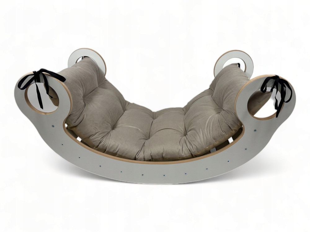 Drewniana deska do balansowania / bujak Montessori + poduszka Beżowa - wszechstronna, kreatywna zabawka dla Twojego dziecka