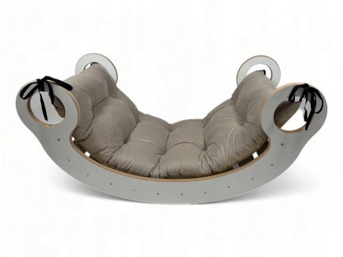 Dondolo Montessori in legno + cuscino beige
