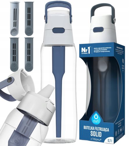 Butelka filtrująca Dafi SOLID 0,7 L jeansowa - w zestawie z 4 filtrami