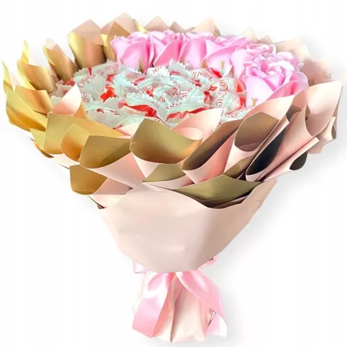 • Składa się z pralin Raffaello 19 szt oraz róż mydlanych 7 szt