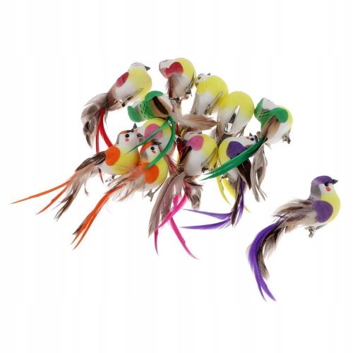 To paczka 12 kolorowych sztucznych ptaków do dekoracji.