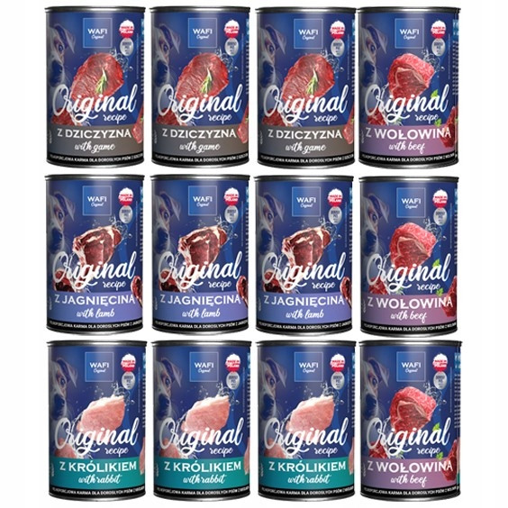 WAFI KARMA MOKRA MIX SMAKÓW 12x400G PUSZKA 65% MIĘSA