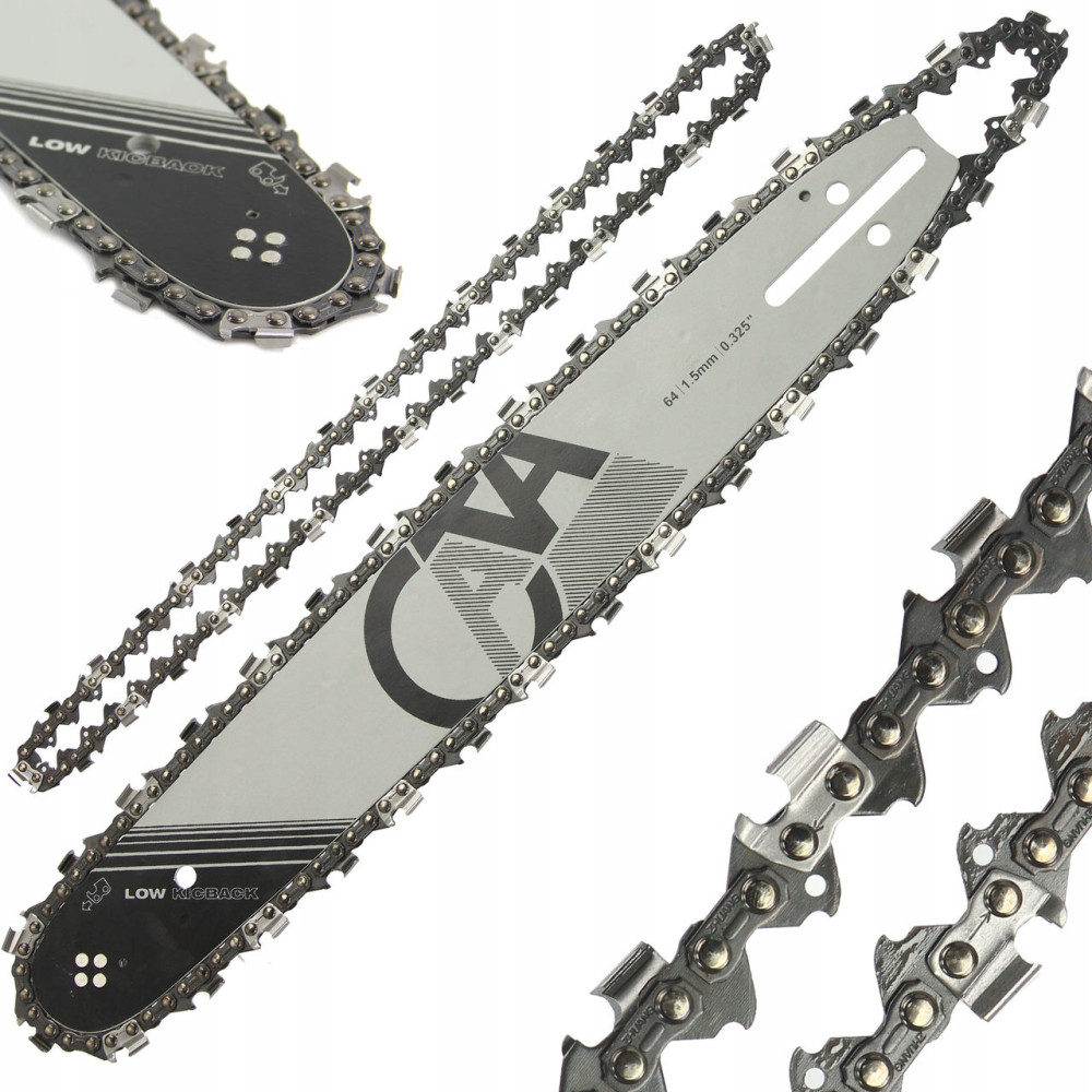 Prowadnica wykonana jest z bardzo twardego materiału odpornego na ścieranie i wysoką temperaturę, jaka powstaje w czasie pracy pilarką łańcuchową. Sprawdzają się w najtrudniejszych warunkach nie ulegając uszkodzeniu. Idealnie przenoszą moc pilarki na wydajność cięcia. Do zestawu dołączono dwa łańcuchy.