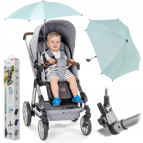 • Dzięki regulowanej klamrze, parasolkę można zamocować w wielu miejscach. Nada się m.in. do wózka, spacerówki czy kojca