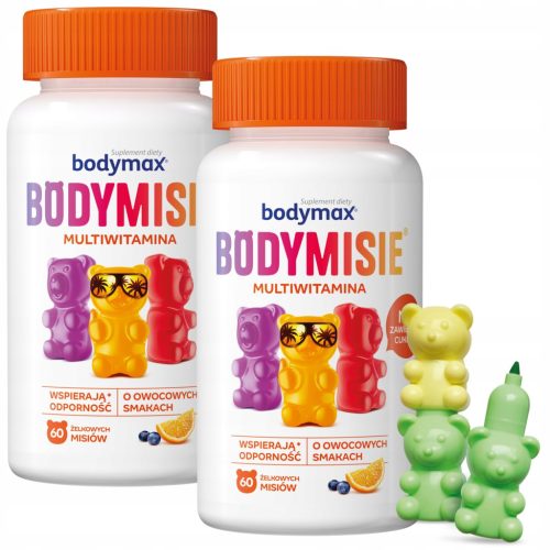 Bodymax Bodymisie to pyszne żelki dla dzieci w wieku 3+, doskonała alternatywa dla młodzieży nie lubiącej witamin w formie tabletek oraz rodziców chcących mieć jedną multiwitaminę dla całej rodziny!