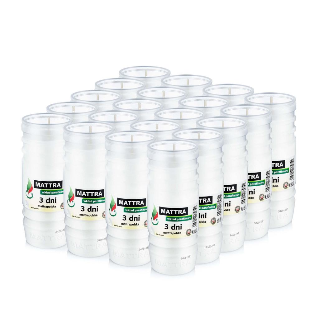 Znakiem rozpoznawczym wkładów do zniczy MATTRA jest długi czas palenia, równy i jasny płomień, oraz czystość wypalania. Dzieję się tak, ponieważ wkłady wykonane są z najwyższej jakości parafin o powtarzalnym składzie, oraz wysokich temperaturach krzepnięcia.