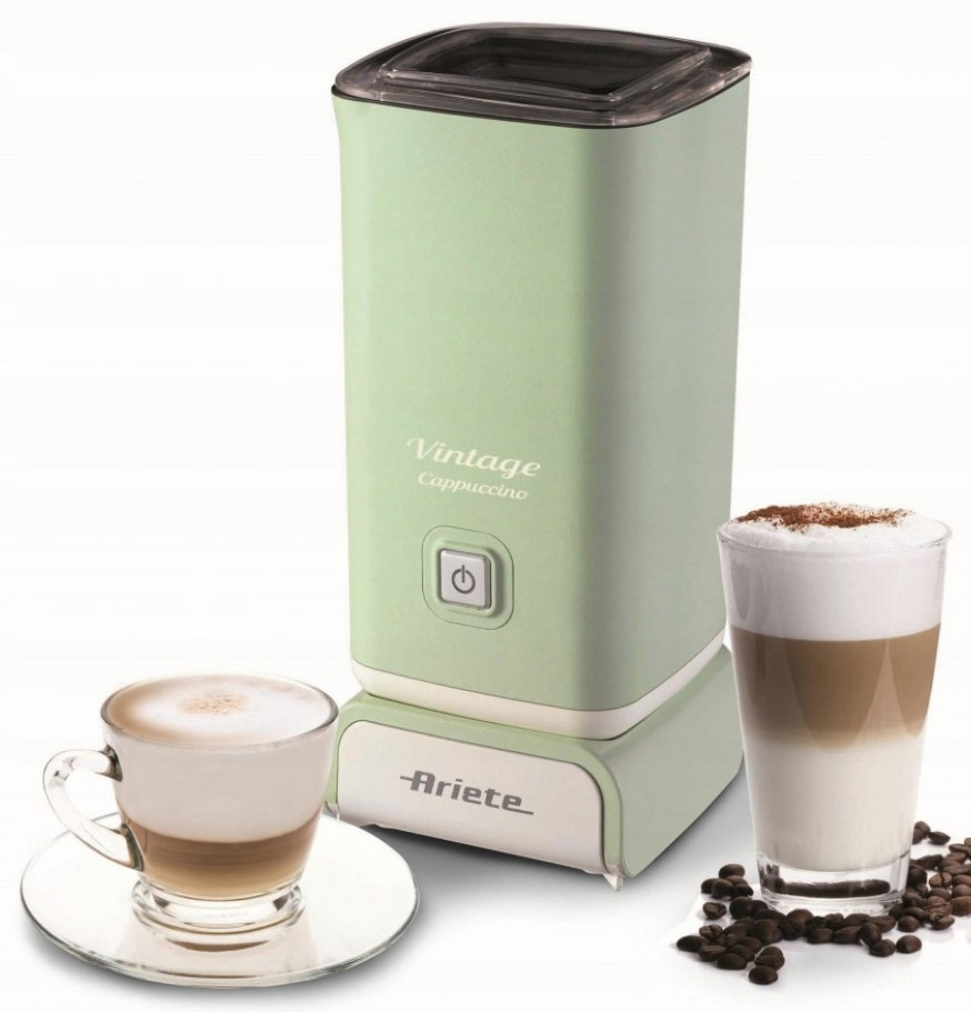 Rozpocznij swój dzień od przepysznej białej kawy! Spień mleko w spieniaczu Ariete Vintage, połącz je z aromatycznym espresso i delektuj się wyjątkowym napojem, który doda Ci energii na resztę dnia!Przekonaj się jak w zaledwie dwie minuty przygotować spienione lub podgrzane mleko! Urządzenie jest bardzo proste w obsłudze – wystarczy jeden przycisk, by zmienić napój w lekką piankę. Nieprzywierająca powłoka ułatwia czyszczenie i daje gwarancję, że mleko nie przypali się. Pokrywka z silikonowym wykończeniem uniemożliwia wylanie mleka z urządzenia.Specjalny system umożliwi Ci nie tylko spienianie mleka na ciepło lub na zimno, ale również będziesz mogła podgrzać jednorazowo aż 240 ml białego napoju. Mleczna pianka to nie tylko doskonały dodatek do kawy, możesz ją również wykorzystać do słodkich deserów i rozgrzewającego kakao.Spieniacz do mleka Ariete to kolejny produkt z serii Vintage, która zachwyca swoim pięknem i prostotą. Urządzenia z tej linii idealnie pasują zarówno do nowoczesnego, jak i tradycyjnego wystroju wnętrza. Wybierz jeden z trzech pastelowych kolorów i przygotuj swoją ulubioną mleczną kawę!