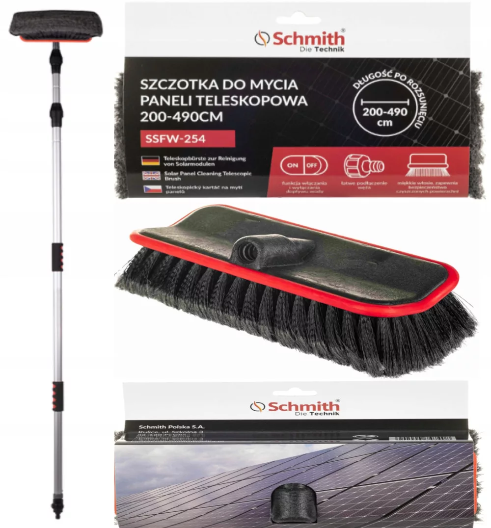 • zapewnia optymalną pielęgnację paneli fotowoltaicznych, solarów, nadaje się również do czyszczenia aut, przyczepy kempingowej, ciężarówki.