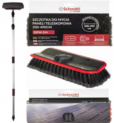 • solidna szczotka teleskopowa z aluminiowym trzonkiem o regulowanej długości do 490cm.