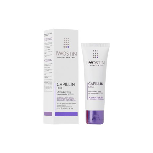 Scopri il potere di IWOSTIN CAPILLIN DUO SPF20, la crema rassodante vaso-protettiva ideale per la cura quotidiana della pelle sensibile, arrossata e con segni visibili di invecchiamento. Grazie alla doppia azione, riduce efficacemente rossori e la visibilità dei vasi sanguigni, mentre migliora la tensione e l'elasticità della pelle. Dotata di proprietà antiossidanti, ritarda il processo d'invecchiamento causato dalla luce solare. Perfetta come base di trucco, questa crema è il tuo alleato quotidiano contro i segni del tempo e le imperfezioni cutanee. Applicare su viso pulito per una pelle visibilmente più uniforme e giovane.