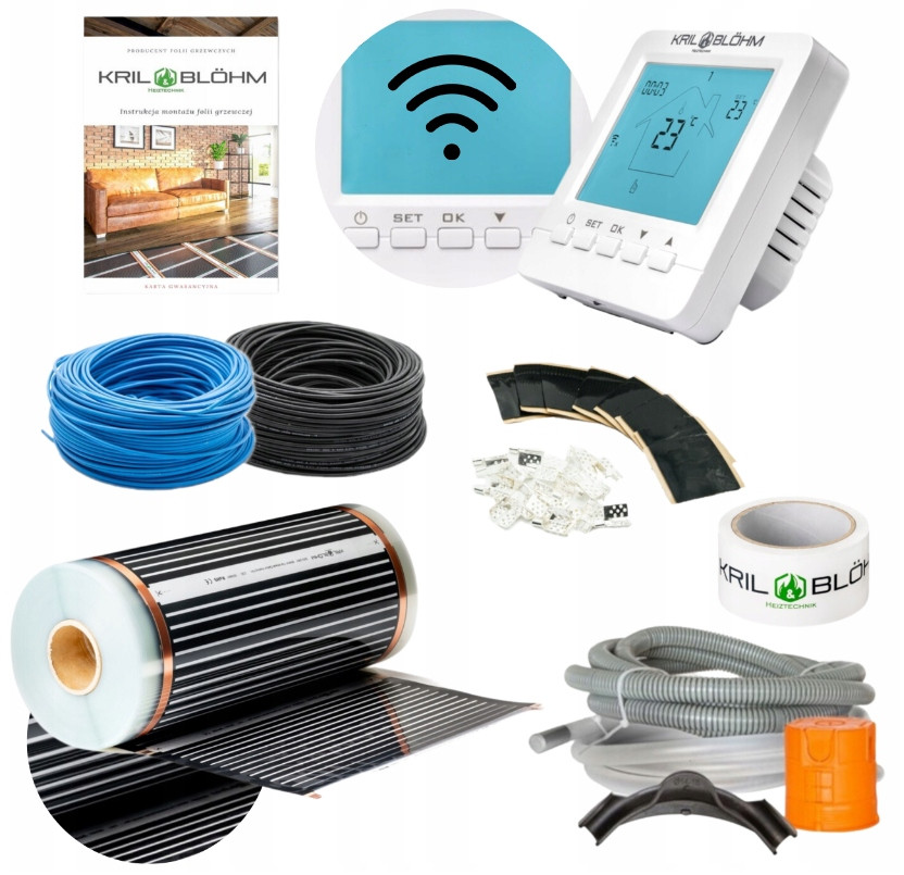 Czerpiąc z wieloletniego doświadczenia Kril & Blöhm, holenderskiego producenta ekologicznych systemów grzewczych, oferujemy Państwu Gotowy zestaw instalacyjny w raz z termoregulatorem Blauw T-3 Wi-Fi oraz Folią Grzewczą 140W/m² KRIL&BLÖHM model: Gameen 100 cm .