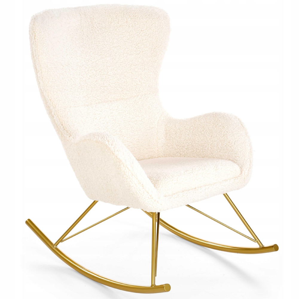 LIBERTO będzie rewelacyjnym uzupełnieniem aranżacji w stylu glamour. Tapicerowany jest miękką i przytulną tkaniną boucle w kolorze kremowym. Całość wspiera się na bujanej podstawie ze stali chromowanej w kolorze złotym. Dodatkowo stal chromowana jest odporna na działanie korozji i zarysowania. Postaw na jakość i komfort na najwyższym poziomie - wybierz LIBERTO!
