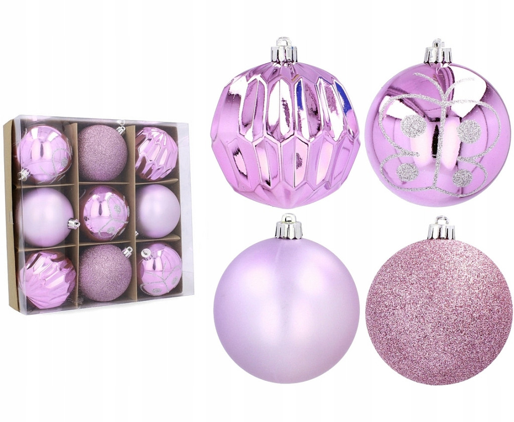 PALLE PER ALBERO DI NATALE, VIOLA, 8 cm, SET da 9 pz