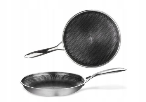 • NIEZAWODNA - Patelnia klasy premium wykonana z najwyżej jakości stali nierdzewnej z powłoką nieprzywierającą o średnicy 28 cm. Wymiary zewnętrzne: długość 50 cm, wysokość patelni 5 cm, wysokość z rączką 8 cm. Patelnia jest wytrzymała i trwała. Patelnia jest z unikatowej serii COOKCELL HYBRYD.