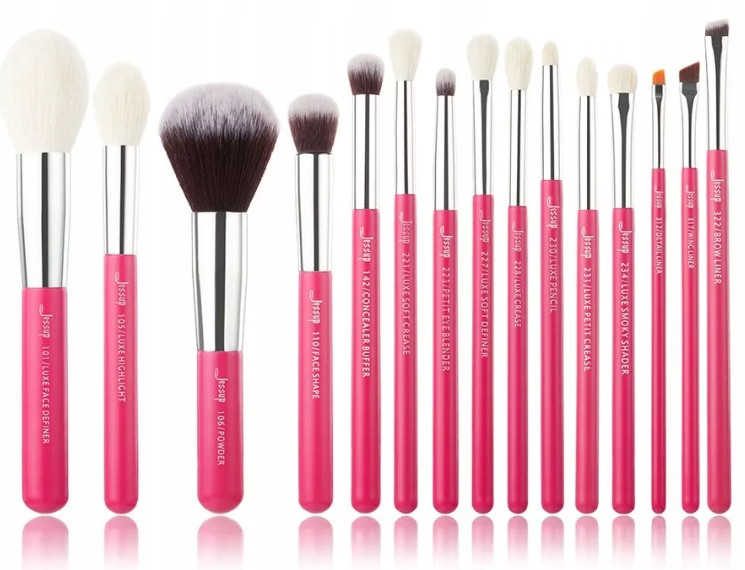 Jessup T202 Brushes Set Rose Carmin/Silver zestaw 15 pędzli do makijażu