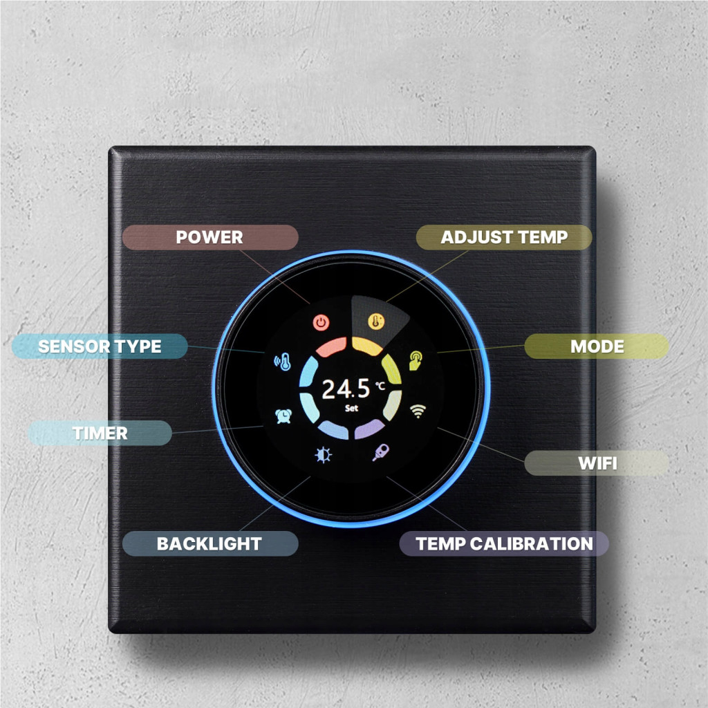 Termostato intelligente WIFI manopola acqua riscaldamento a pavimento 3A nero GA