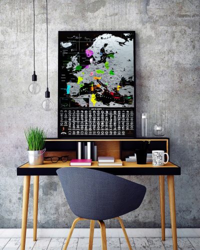 W tej zdrapce Europa Black zastosowaliśmy najlepszą technologię druku, lakier selektywny, farbę brązową, tłoczenie folią. Czarna mapa idealnie wpasowująca się w nowoczesne wnętrza przypadnie do gustu każdemu wielbicielowi minimalistycznego, przewidywalnego nowoczesnego designu i pomysłów high-tech. Każdy kraj pod warstwą zdrapki - jasne nasycone kolory, warstwa zdrapki nałożona na cyfry - główne zabytki i symbole krajów europejskich.