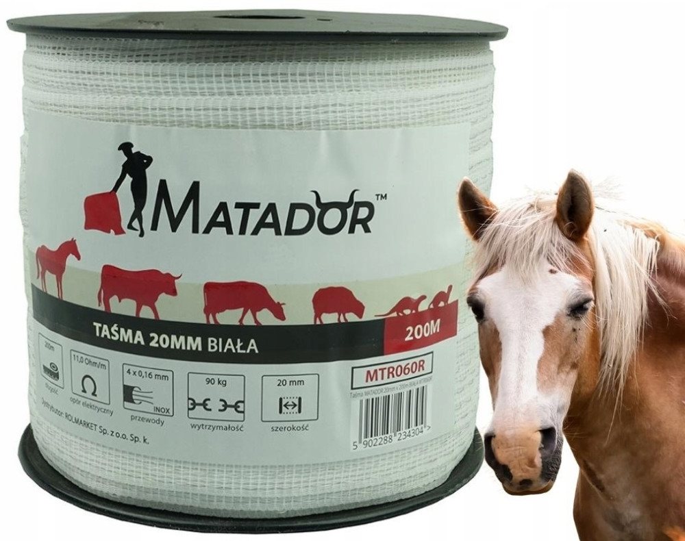 Taśma Matador MTR060R do ogrodzeń elektrycznych dla koni 20mm x 200m biała
