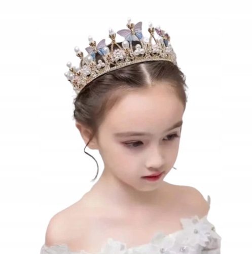 Diadema con corona d'oro e farfalle per la festa di compleanno, comunione, ballo