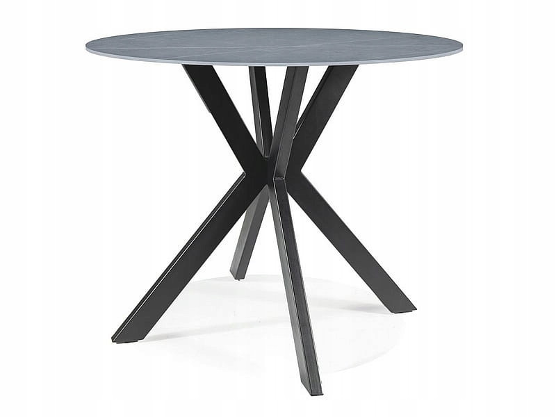 Stół okrągły do salonu TALIA 90 szary efekt marmuru/czarny Signal