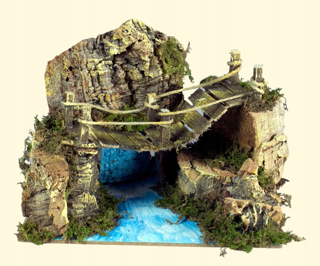 Un bellissimo ponte sul fiume per decorare il Presepe di Natale. -20 x 14 x 10 cm