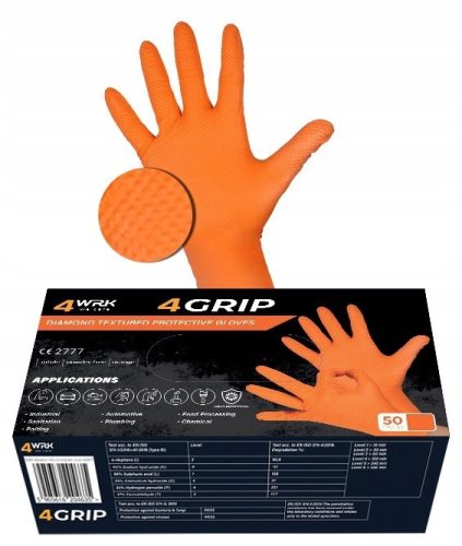 Rękawice 4grip to innowacyjne rozwiązanie dla osób, które oczekują maksymalnej ochrony i skuteczności w różnych warunkach roboczych. Te nitrylowe rękawice robocze zostały stworzone, aby zapewnić wyjątkową wytrzymałość, komfort i kontrolę podczas pracy. Bezpudrowa konstrukcja rękawic zapewnia wygodne użytkowanie, minimalizując ryzyko potencjalnych reakcji alergicznych. Teksturowana diamentowa struktura części chwytnej dodatkowo podnosi ich funkcjonalność. Ta wyjątkowa faktura poprawia przyczepność i kontrolę nad przedmiotami.
