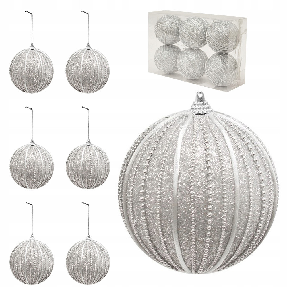 ✨Komplet klasycznych okrągłych bombek. Wykonane w srebrnym kolorze. Wykonane z tworzywa, są bardzo dobrą alternatywą dla klasycznych szklanych bombek. Opakowanie zawiera 6 szt.