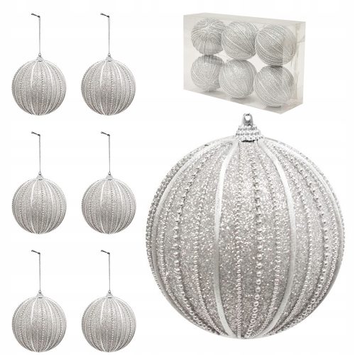 SREBRNE BOMBKI NA CHOINKĘ | KOMPLET 6 BOMBEK O ŚREDNICY 10 CM