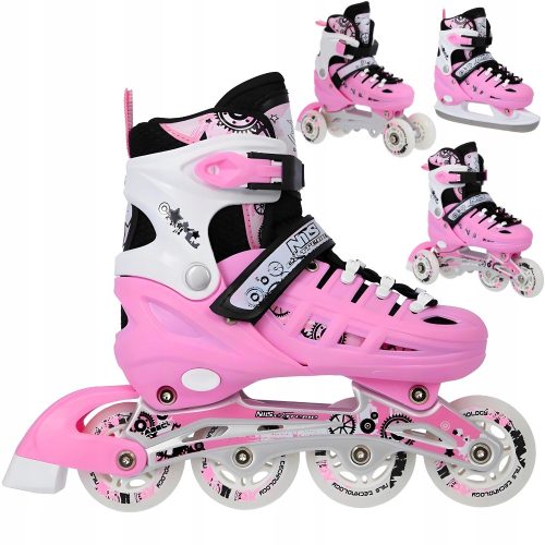 NH10905 Set Nils Extreme to łyżwy przeznaczone dla pasjonatów jazdy. Produkt oferuje 4 możliwości konfiguracji. Są to: łyżwy, rolki, wrotki oraz rolko-wrotki.
